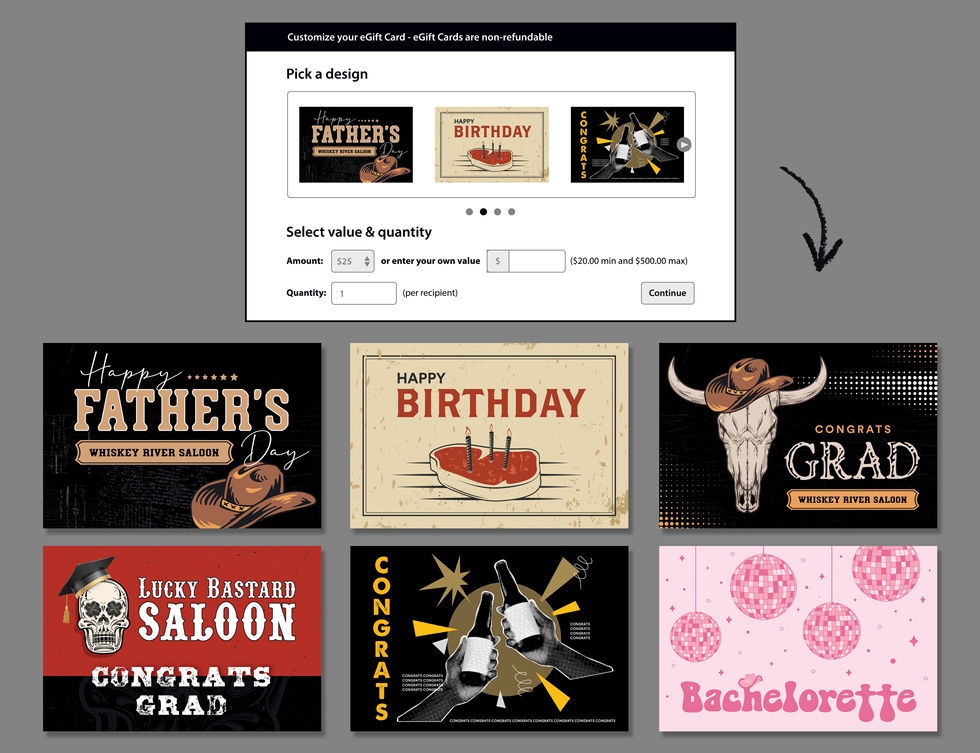 Pictured: Social Media Design | Email Design | Branding & Identity + Website Graphics | EGift Card Design